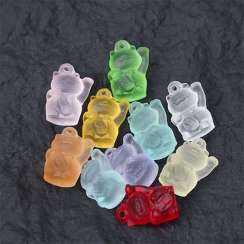 Adorno de gato de riqueza Animal DIY tallado de 16mm con colgante de cristal Natural cuentas de piedra personalizadas para collar