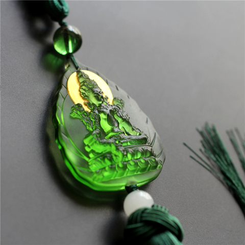 Exquisito cristal Natural Jade Lotus sentado diosa de la Misericordia colgante collar de bendición religiosa para niños directo de China
